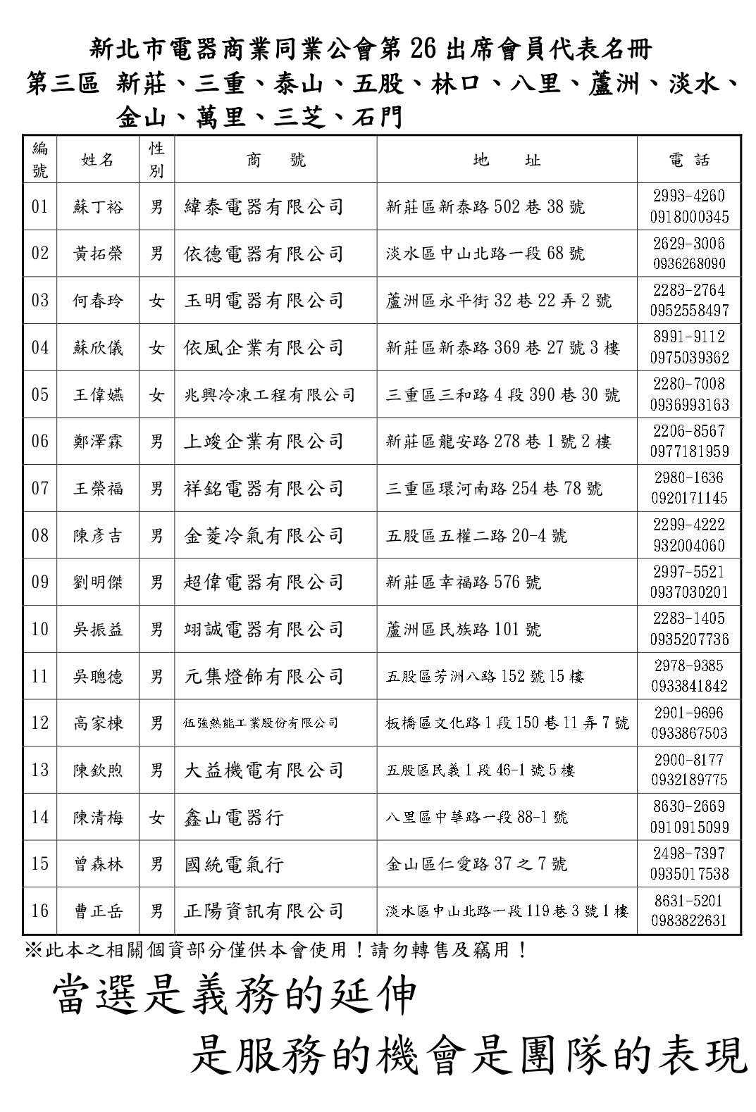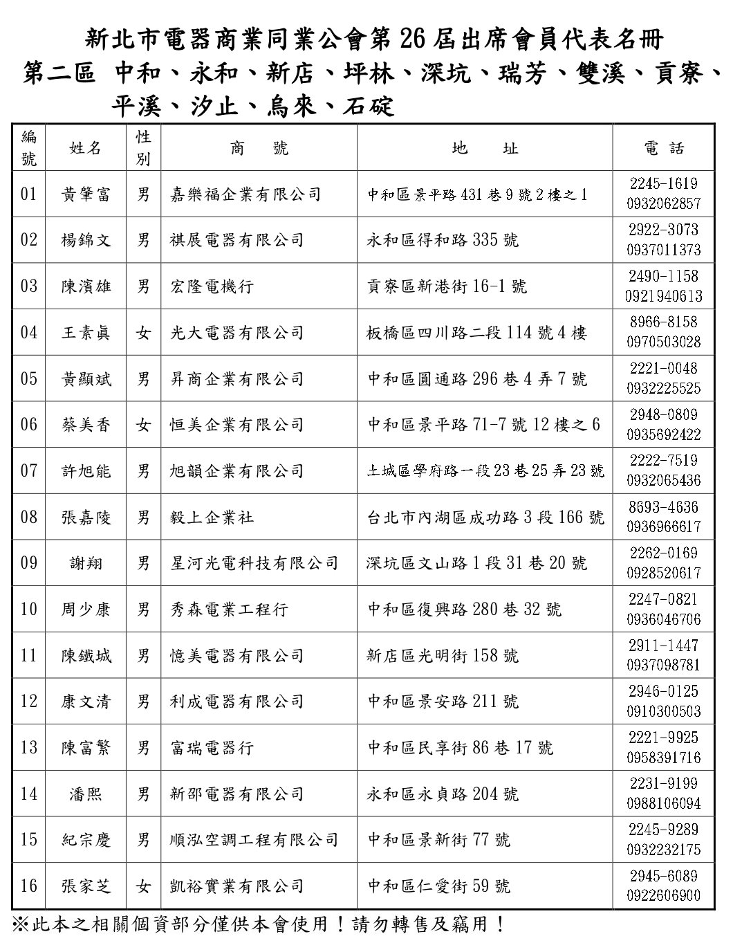 會員代表名錄