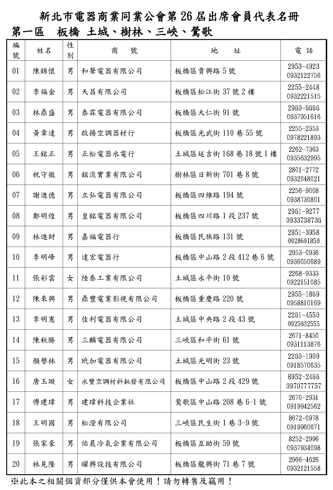 會員代表名錄